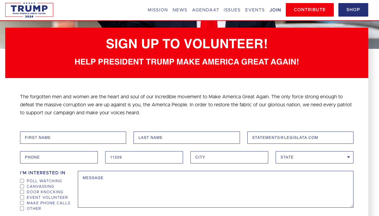 Trump’s really leaned into the volunteering aspect, taking you to that page as soon as the email was in.