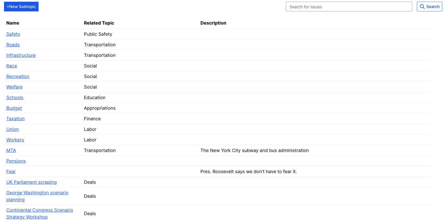 When a new case happens, you’ll make a new subtopic for it, with constituent case as the related topic. This will be done with the blue +New Subtopic button in the subtopics page. This lets the bot know that posts with this topic are ones that we’ll be tracking.