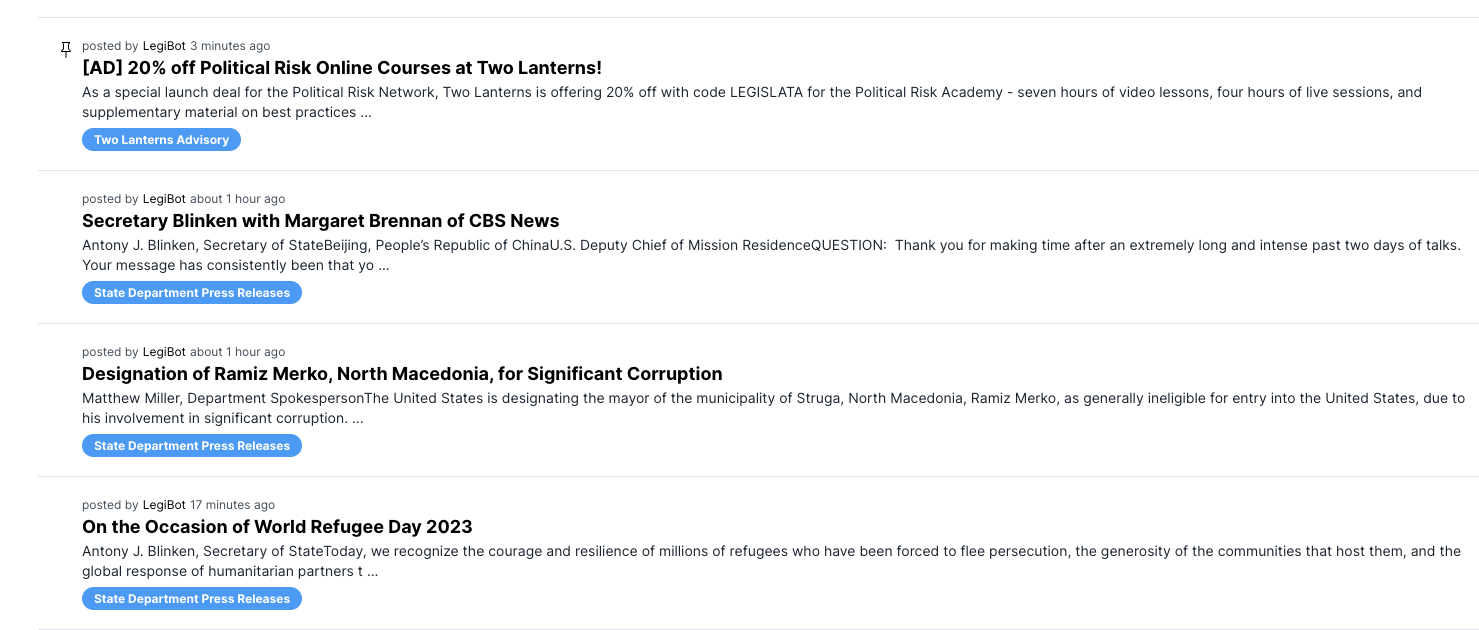 Legislata offers advertising in our automated informational feeds